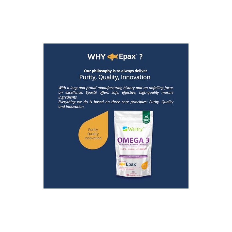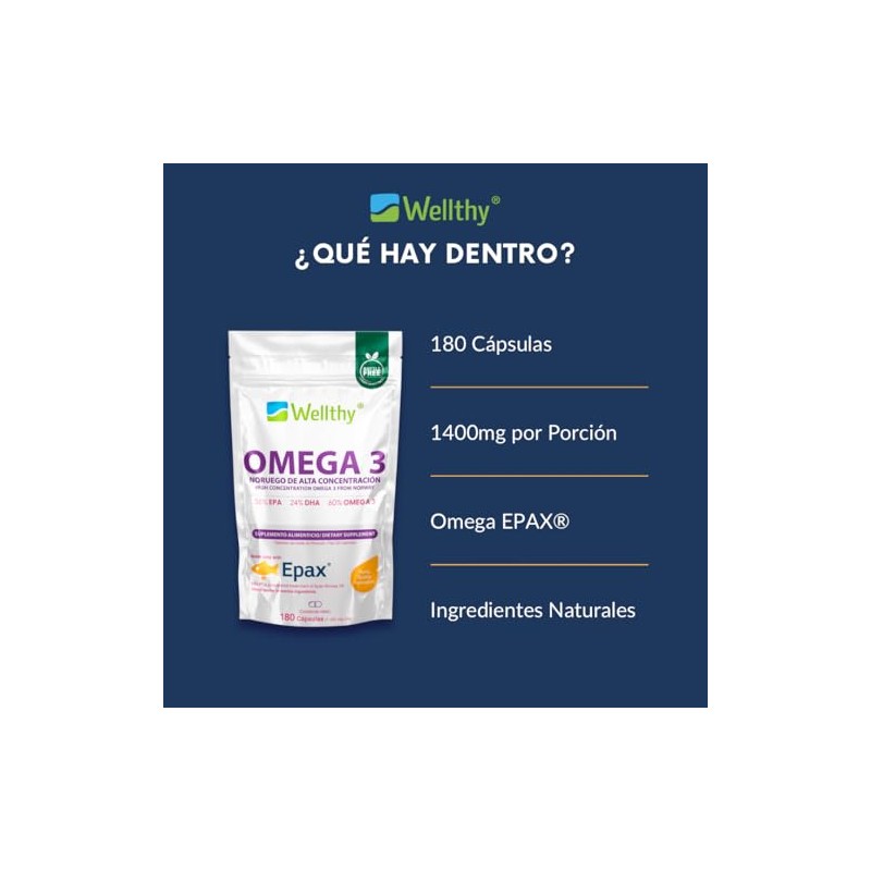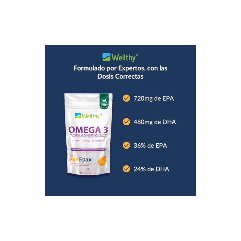 Wellty Omega 3 Salmn Noruego Epax 180 Cpsulas. El aceite de pescado Epax est ultraconcentrado en omega 3 con un 36 de EPA y un 24 de DHA. Cpsula de...