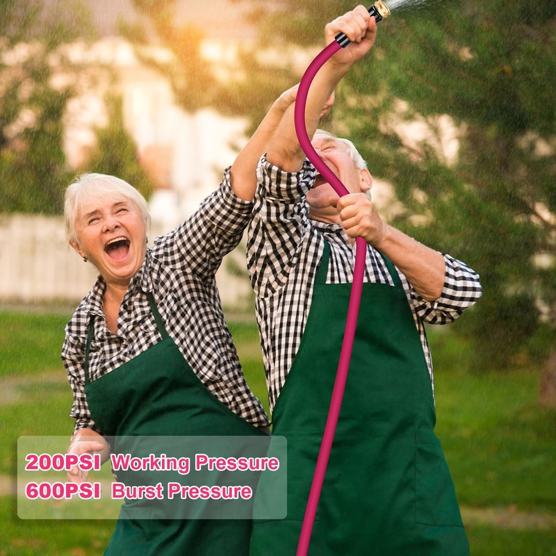 - No Kinks Under Water Pressure: The garden hose is very flexible, the open water supply system kinks will straighten automatically under water pressure, and can withstand 600PSI burst pressure and 200PSI working pressure.
