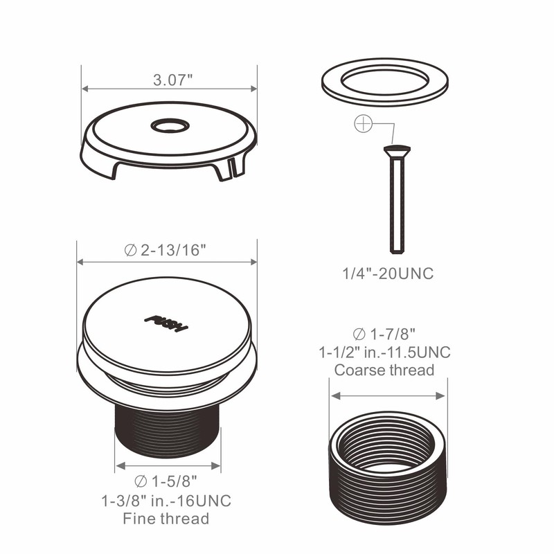 - WHAT YOU GET: Complete kit includes bathtub drain, thread adapter bushing, washer, one-hole overflow faceplate, and a 1/4 in.-20 UNC faceplate screw.