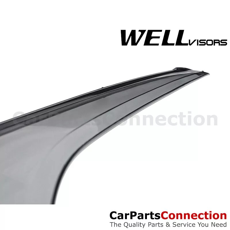 A vent visor, also commonly known as a rain guard, rain visor, window visor, or window deflector, protects you and the interior of your car, truck or SUV from wet weather. It deflects rain, snow, sleet, wind and hail away from the windows of your vehicle, thus allowing you to keep your windows open even in inclement weather. A vent visor will also help you save on fuel costs and improves gas mileage because you don’t have to run your air conditioner to keep yourself comfortable while deflecting wind (like an airplane wing) to minimize the wind resistance known as “drag” that impedes your vehicle's forward motion. Highlights & Features:Injection-molded for heavy duty thickness. Made of Polycarbonate for high strength and light weight What's in the box:1 x Wellvisors Window Visors Set Material:Window Visor - Polycarbonate What you might need for installation:Easy installation. No-drilling required. Color:Window Visor - Smoke Tint Trim - Black | |||||||||