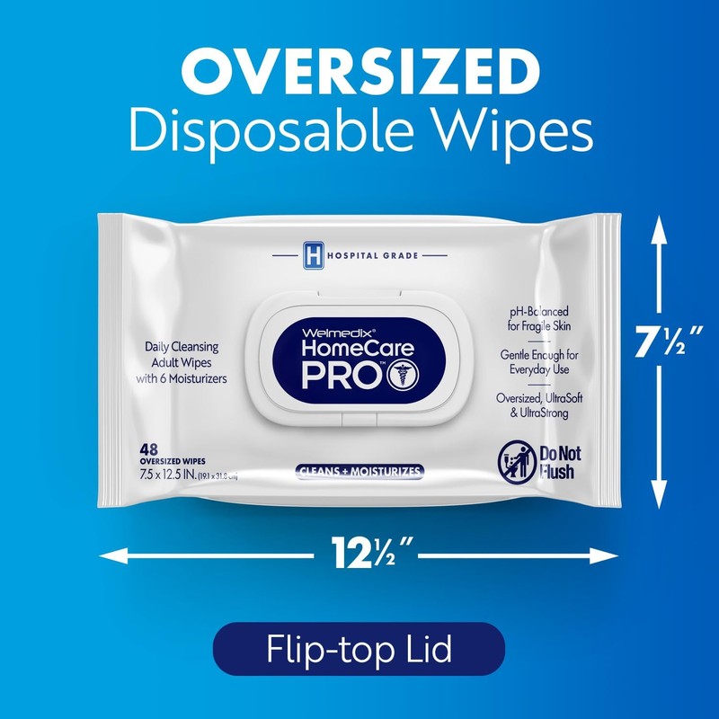 Welmedix Homecare Pro Oversized Daily Cleansing Adult Wipes 12 Pack