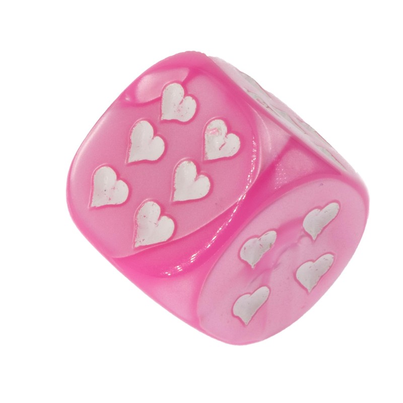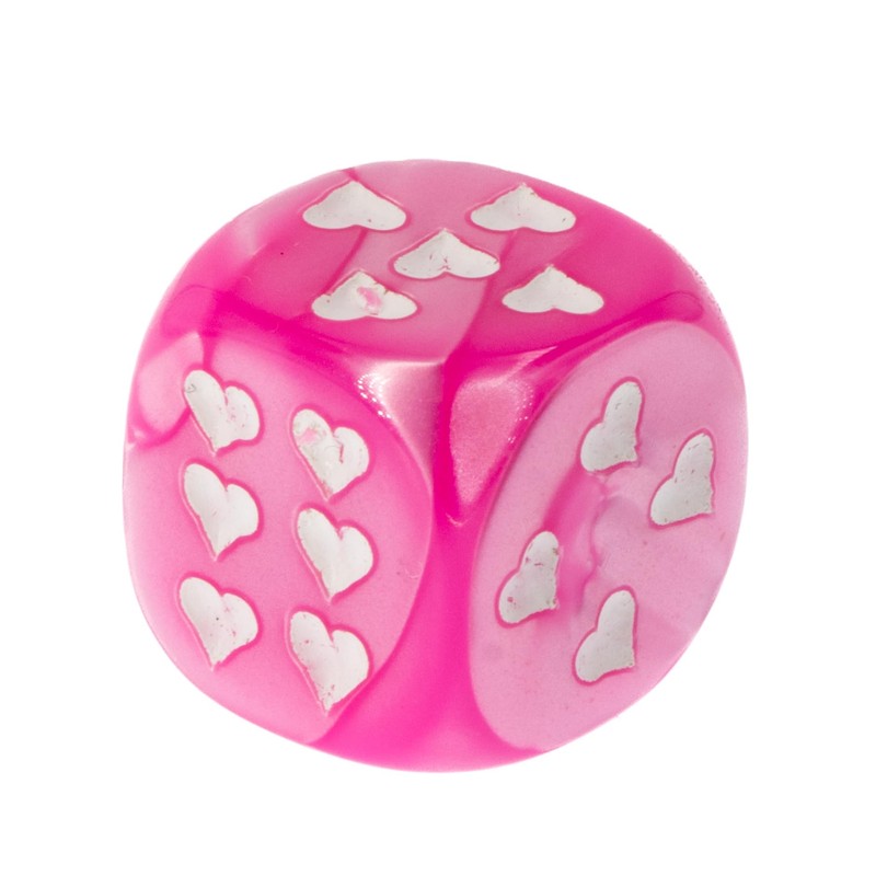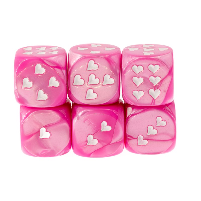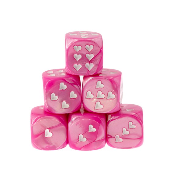 WeLoveDice - Dice Pink with White Hearts - Made in Germany - Pack of 6