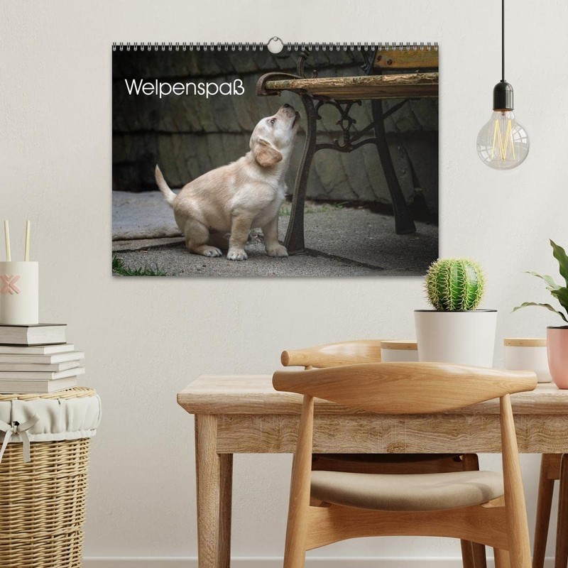Welpenspaß (Wandkalender 2026 DIN A3 quer), CALVENDO Monatskalender: Niedliche, agile Labrador Welpen tollen durch das Jahr! (CALVENDO Tiere)