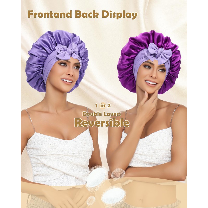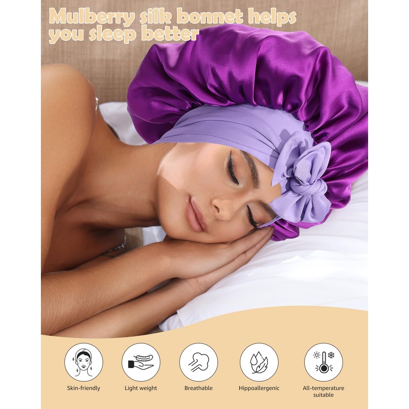 WELROG Double Sided 100% Silk Satin Hair Cap for Women