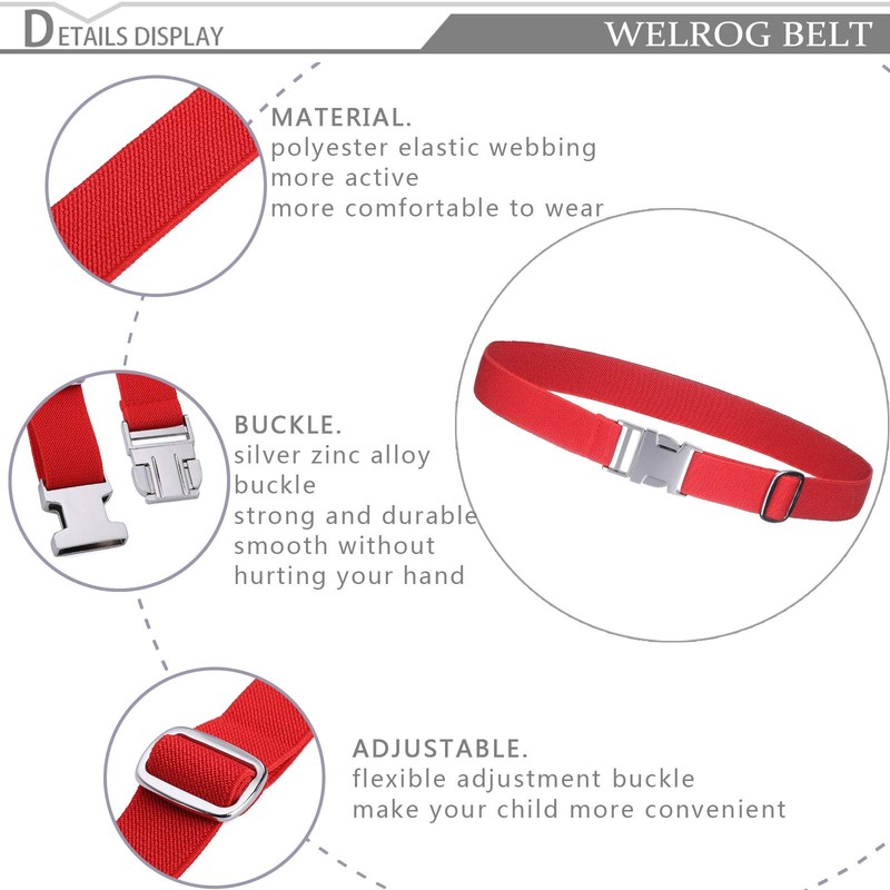 WELROG Kids Toddler Belt Elastic Adjustable Stretch for Boys Girls Belts with Easy Zinc Alloy Buckle (Red)