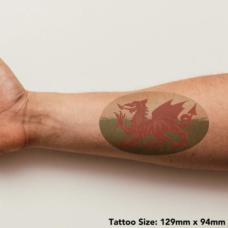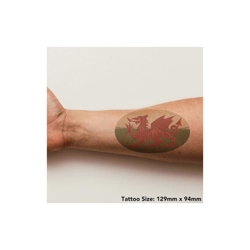 'Welsh Dragon' Temporary Tattoo - Water Resistant, Skin-Safe, Non-Toxic Trans...