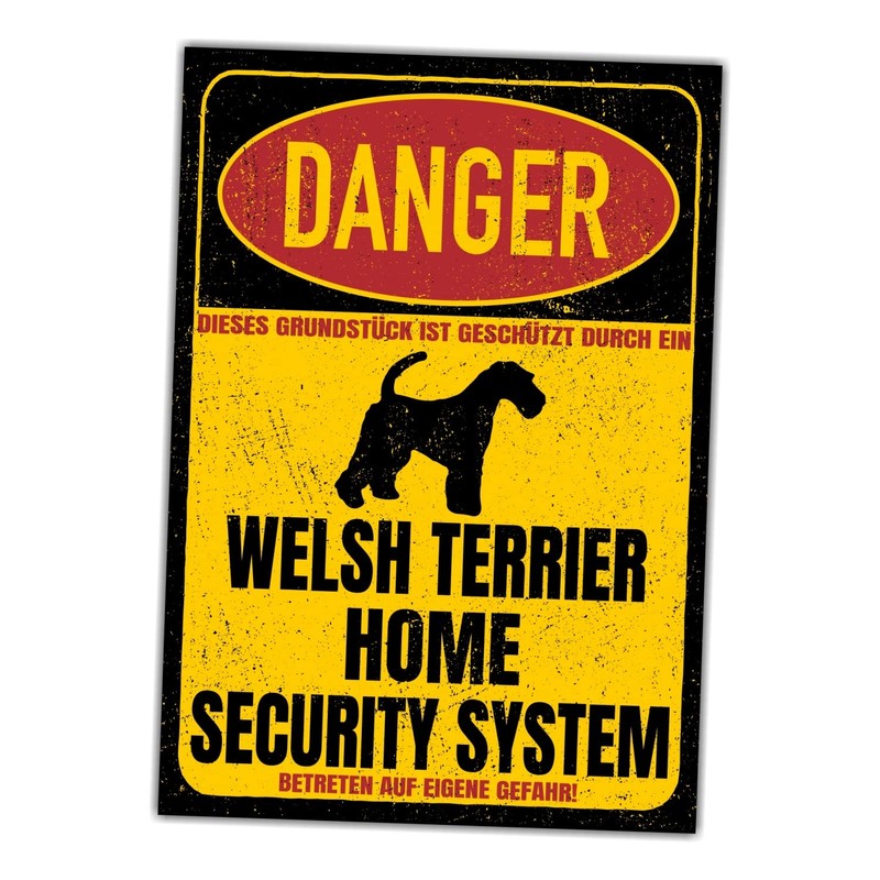 - Great attention door sign dog motif: this property is protected by a Welsh Terrier - Home Security System! The dog sign warning of the dog for your door or garden fence. Weatherproof and UV-resistant printed with great dog motif in the latest UV printing process. Siviwonder