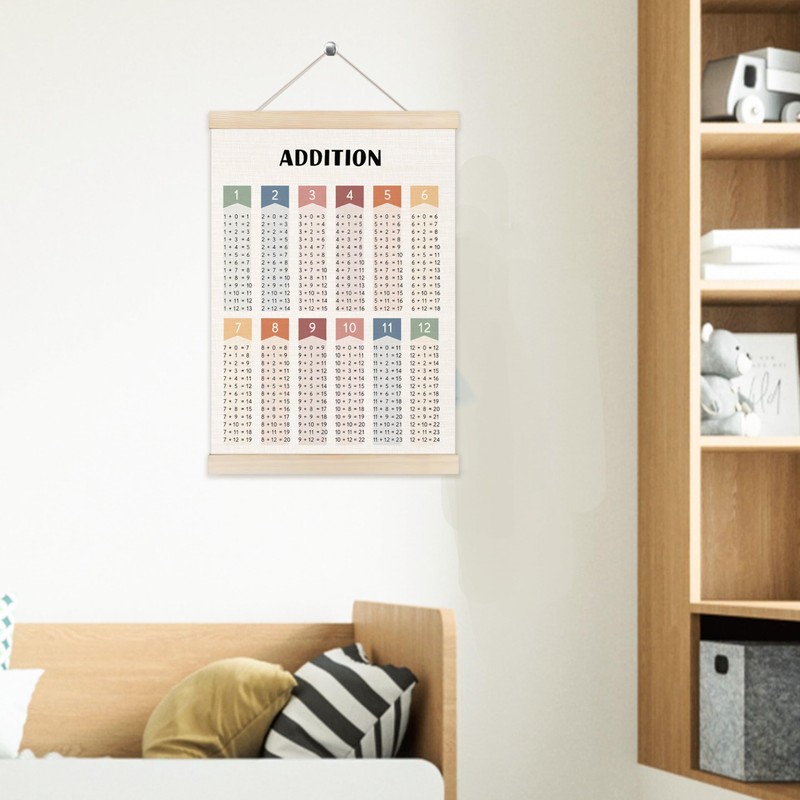 Welshower Boho Math Addition Education Poster Hanger Frame, Math Addition Chart Wall Art Prints Decor for Kids Toddler Nursery Room Bedroom Playroom Classroom Homeschool, 12x16 Inch