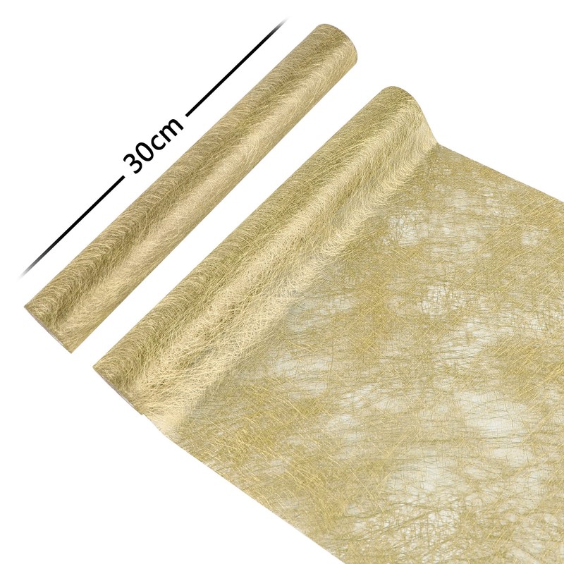 WELTRXE Metallic Gold Decorative Non-Woven Fabric Table Runner Elegant Table Decoration Sash for Party Celebration Wedding (Gold, 30cm x 25m)