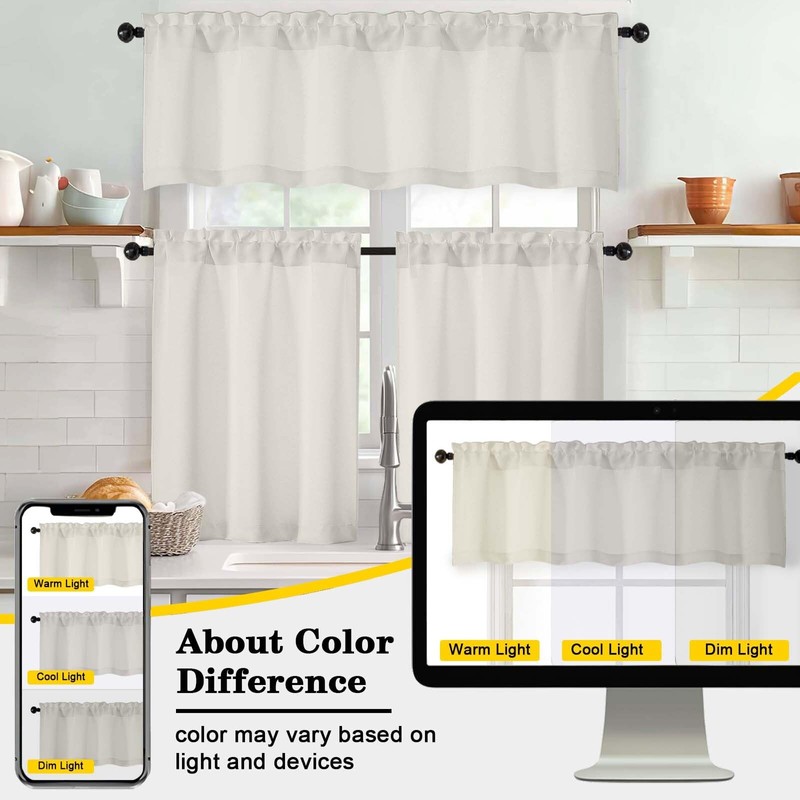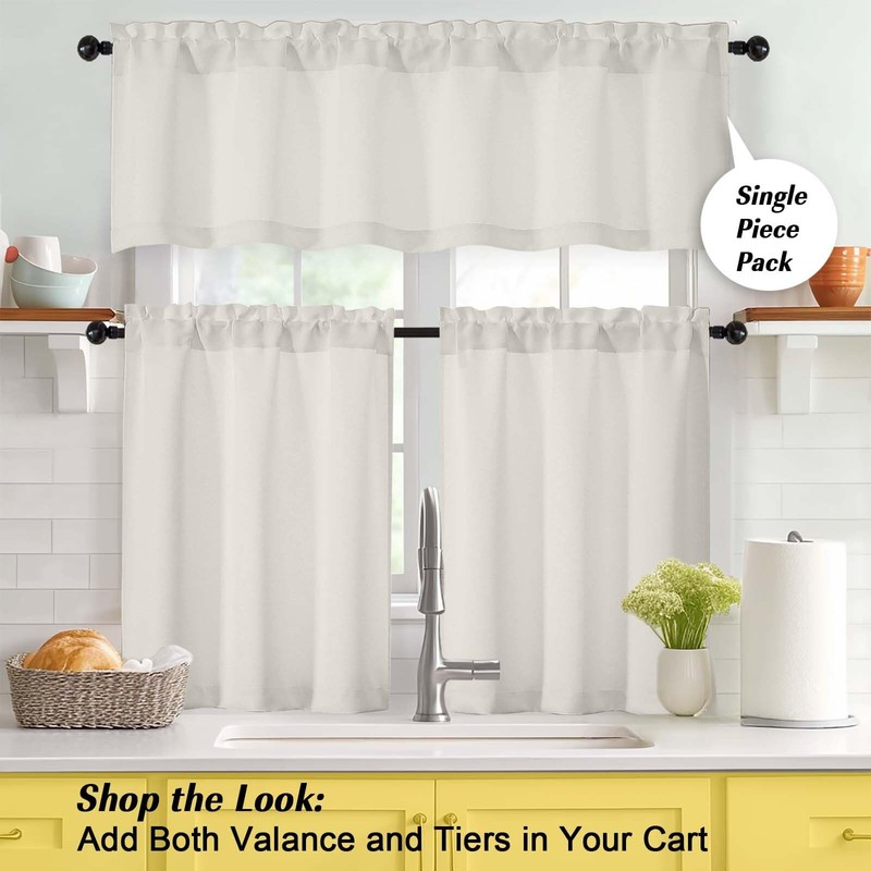 WelvetBLK Natural Valances for Windows 1 Piece, Soft Solid Thermal Insulated Decorative Small Kitchen Window Curtains for Bathroom Basement Cafe, Natural, 60" Wx14 L