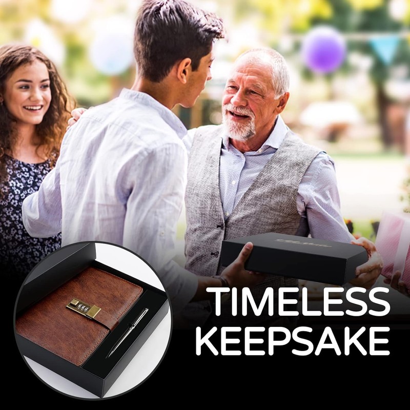 WEMATE Journal Keyed Notebook A5 with Pen and Gift Box PU Leather Diary 2024 Privacy Notebook, 240 Pages 15cmx22cm-Brown