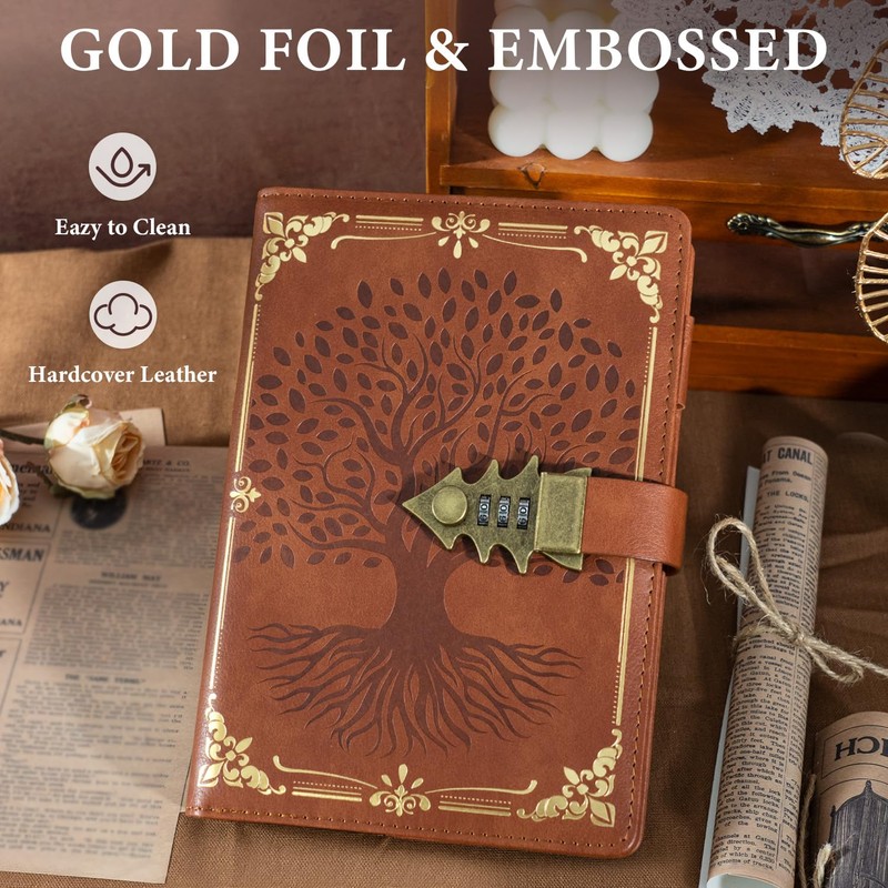 - Locking Diary: WEMATE locked journal is equipped with a retro tree-shaped metal lock. The initial password is 000, and it has thousands of combinations. Whether it is your notes or personal writing, they can be well protected. The notebook with lock also comes with an instruction card that allows you to learn how to open the lock, how to set the password, and how to retrieve the password.