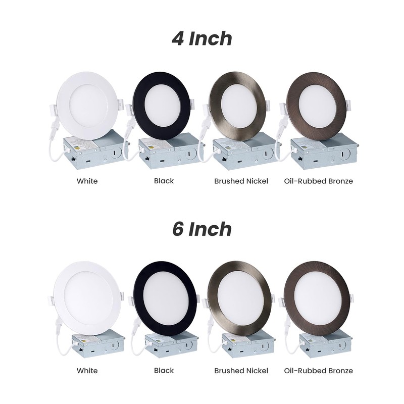 - 5CCT : Eliminate the hassle of selecting ideal color temperatures for kitchens, bathrooms, garages, or storage areas. Our recessed lights provide 2700K/3000K/4000K/5000K/6000K options—effortlessly switch via the junction box button.
