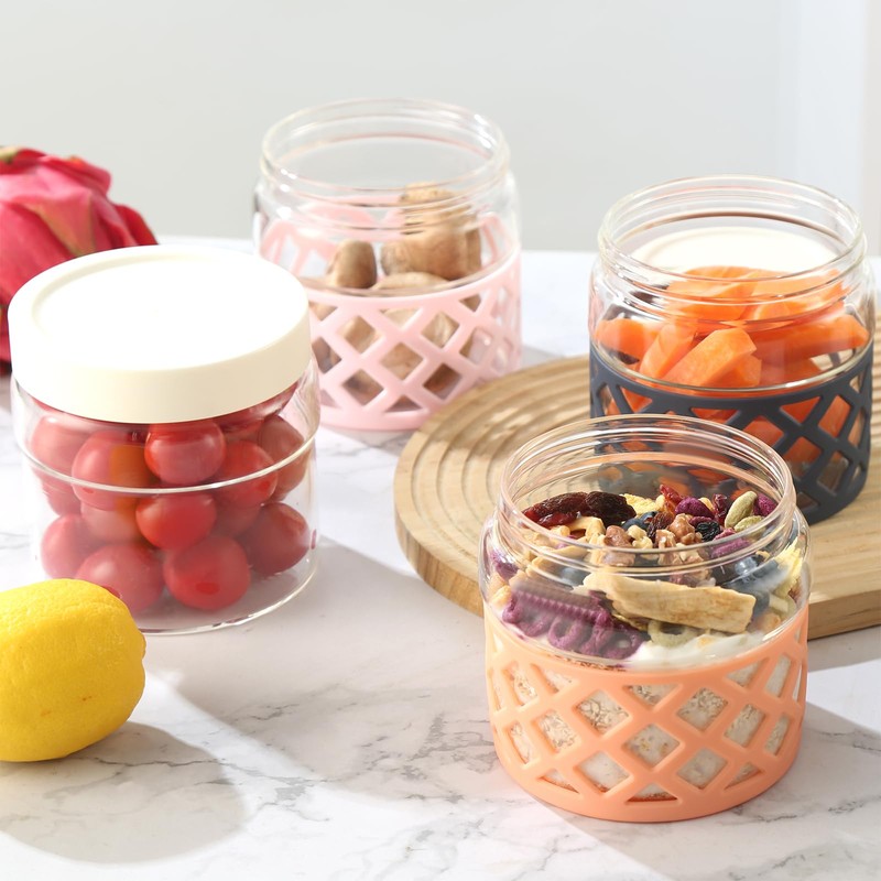 - MULTIPLE FOR DAILY USE: Keep your food and dry staple ingredients fresh and organized. The airtight glass container is good to preserve various foods like jams, chutneys, sugar cube, spices, nuts, tea, dried beans and your favorite snacks like biscuits, cookies, chocolates, fresh-cut fruits even ice-cream and milk-shake. It is perfect to kitchen storage and refrigerator storage. It can also be used as an overnight oats container because of its good sealing.