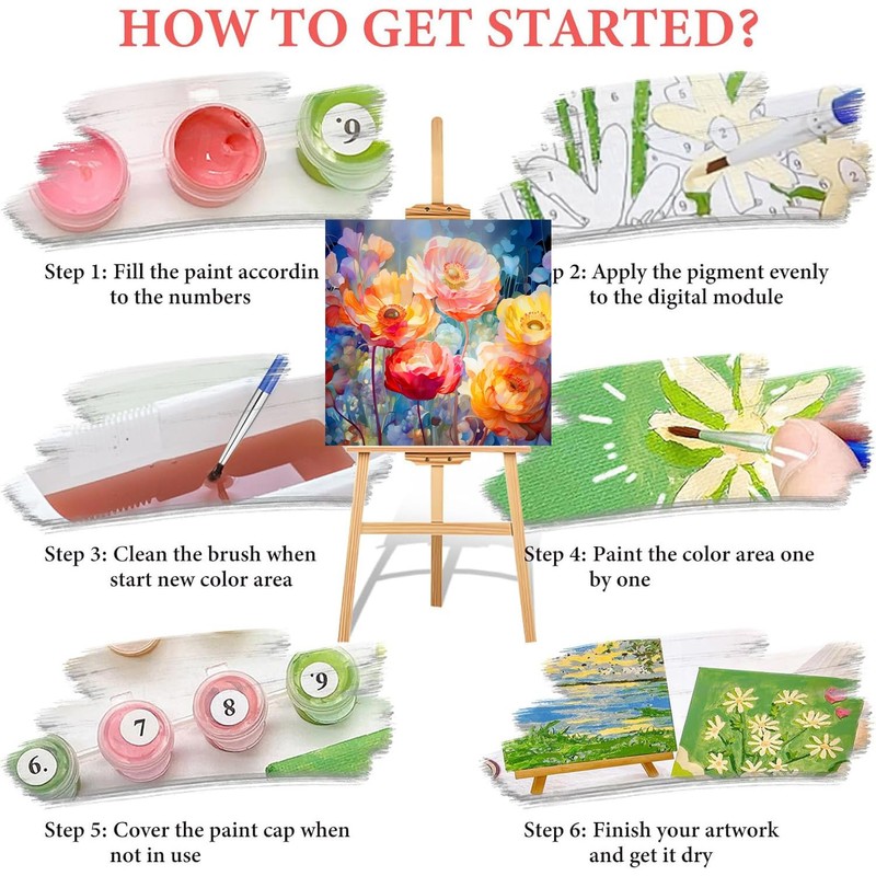 - 【What You Will Get】Acrylic DIY paint by numbers kit for adults with frame has a complete tool kit, including 2*nylon brushes, 2*hook nails, 1*matched Acrylic paint and 1* pre-printed textured HD canvas (Include Framed), Open the package and you can start painting immediately.