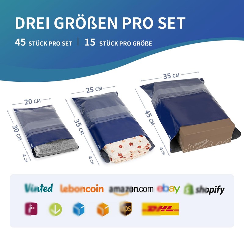- 45 PACKUNGEN IN 3 VERSCHIEDENEN GRÖßEN - Mit den Maßen 20x30cm(15 Stück)+25x35cm(15 Stück)+35x45cm(15 Stück) verfügen unsere Versandtaschen auch über eine 4 cm breite Klappe. Bitte bestätigen Sie die Größe vor dem Kauf.