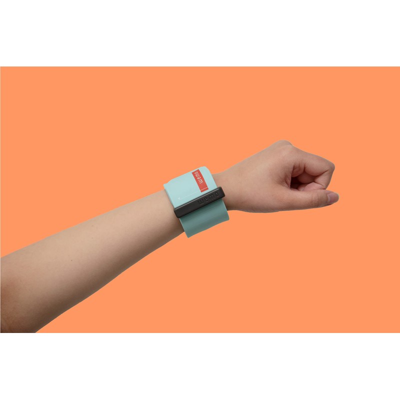 The "wemo Pen" is shaped to fit perfectly on the wemo Band Type, so you can always comfortably wear the pen in the same position as the wemo Band Type and won't need to look for a pen when you want to take notes.Simply remove the wemo pen and slide it with one hand so you bring the nib out to write without ever missing a quick note.The nib is stored automatically when the pen is attached to the wemo Band Type again once you’re finished writing, so you can rest assured that it will not stain your clothes.Also, in an emergency, the main unit can also be used in place of an eraser to erase characters.