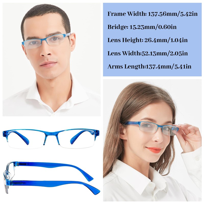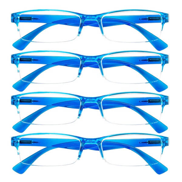 WEMOOMOOTANTS 4 Pairs of 3.5 Half Rim Reading Glasses for Women Men Lightweight Blue Readers 1.0 1.5 2.0 2.5 3.0 350