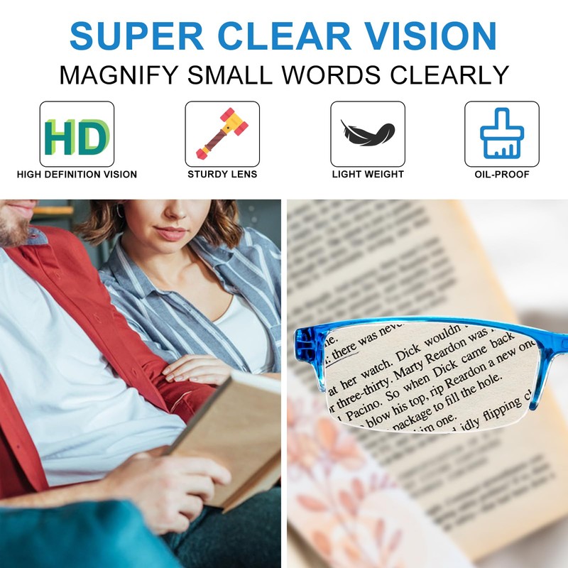 - Super clear vision to see close-up - WEMOOTANTS unisex 3.5 reading glasses offer super clear close-up vision with high definition lens, higher precision without distortion. Ideal for reading small words on books, papers, menus, or check message on phone, pad, and computer.