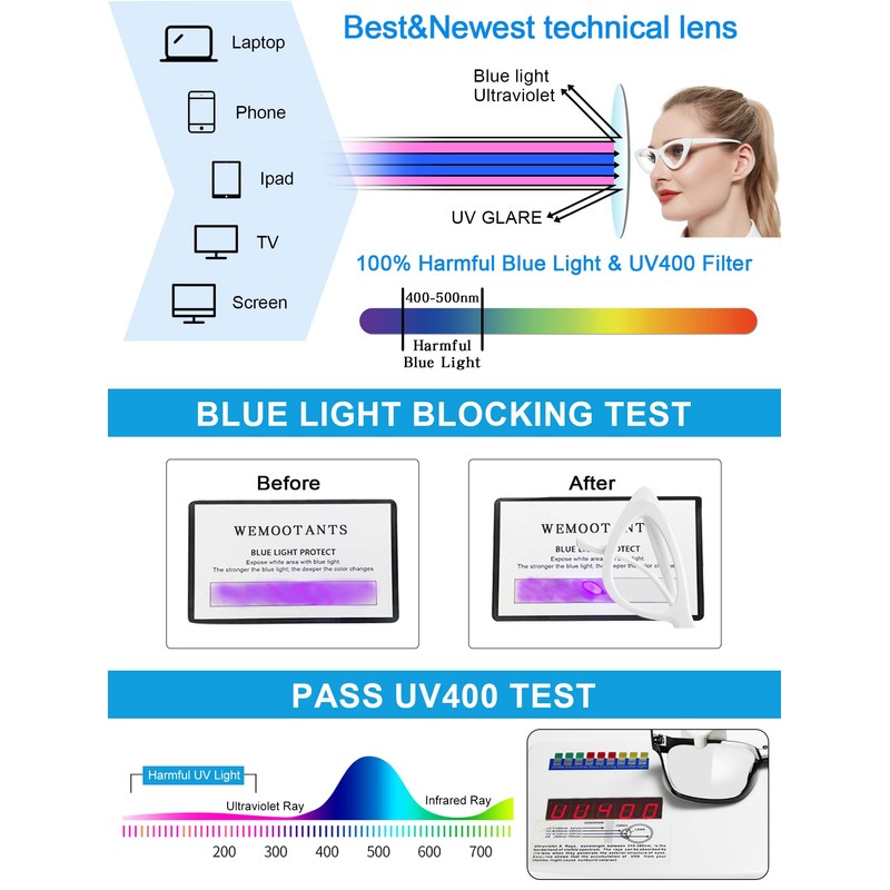 WEMOOTANTS is committed to producing ladies cat-eye blue light blocking glasses that satisfy our customers. We keep up with fashion trends and our computer glasses are sold all over the world.