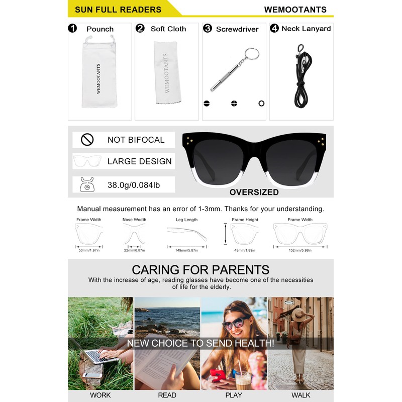 ♦WEMOOTANTS is committed to providing stylish, high-quality READER SUNGLASSES at reasonable prices. Here, the goal is to buy a beautiful pair of reader sunglasses without spending a lot of money. We are happy to strike a balance between quality, fashion and cost. In addition, make fashion within reach!