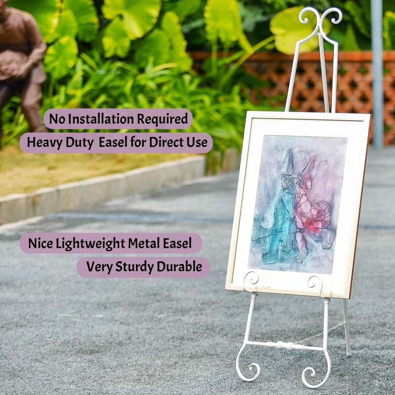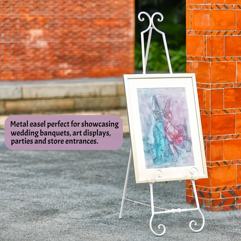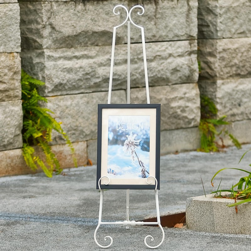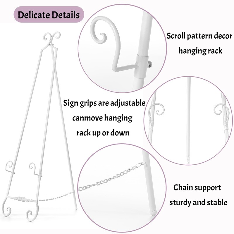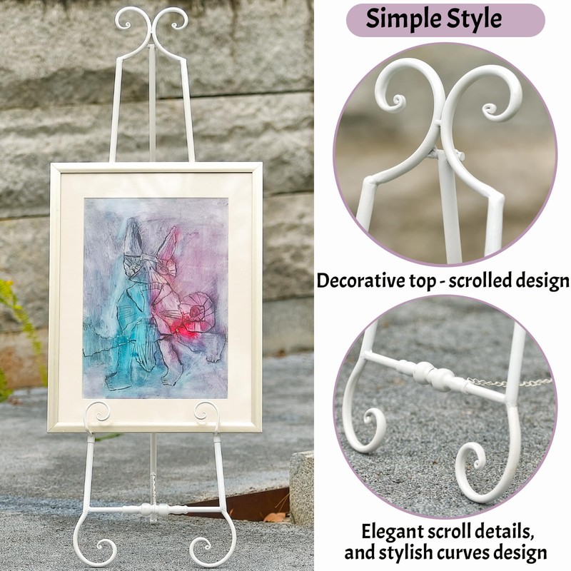 - White Easel Stand for Wedding Sign. The Large Easel Stand for Display features a white finish with scroll accents, while the adjustable height accommodates various display needs. Mirror Stand offers a stylish and functional solution for both indoor and outdoor events or part of home decor.