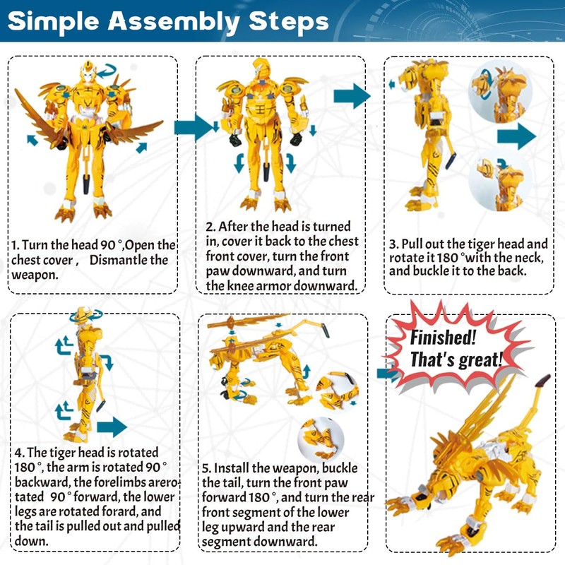 - Fun Animal Deformation Robo:】It can be deformed between the robot and the animal, with a weapon, so that your child can immerse in the fun of assembling the robot. It combines animals with mechanical soldiers, bringing double fun.