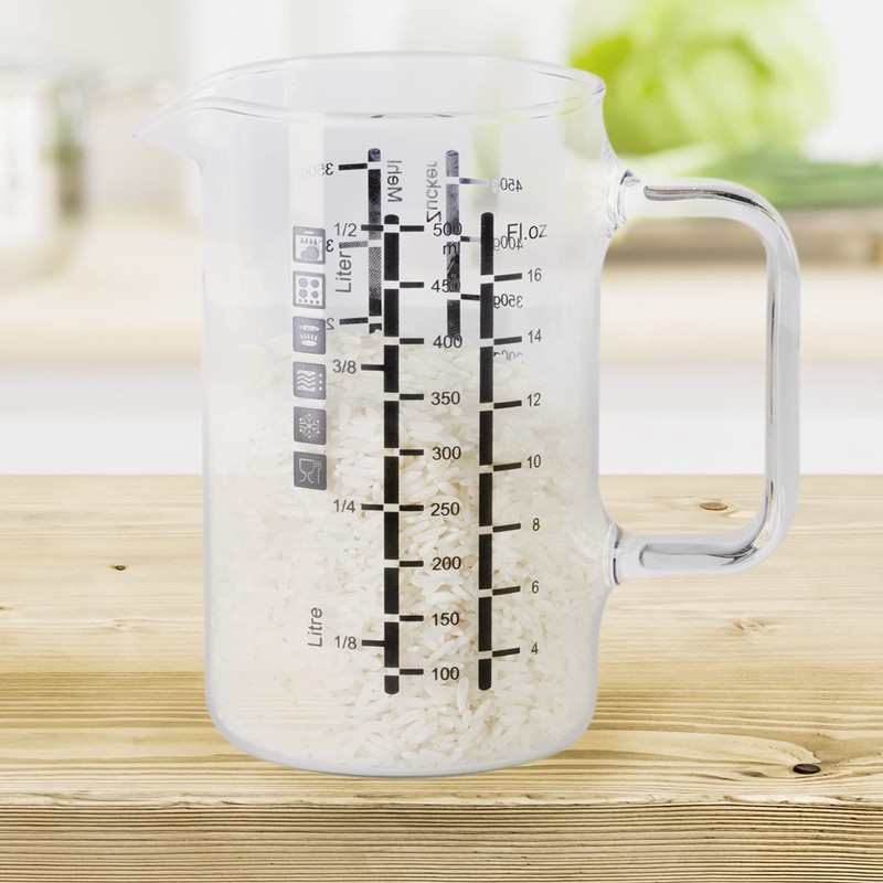 - Measuring cup with 0.5 litre capacity made of glass, practical scale for accurate measuring and dosing of baking and cooking ingredients, pouring spout for clean filling