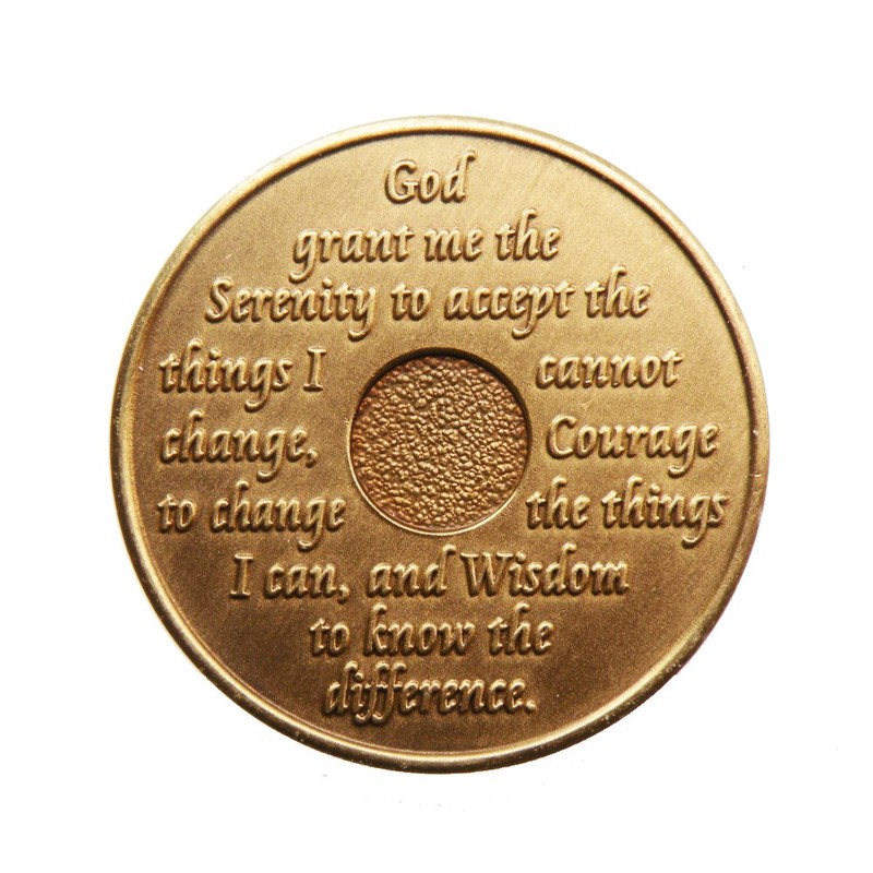Beautiful set of 1 2 and 3 month AA Alcoholics Anonymous Medallions. These chips celebrate 30 60 90 days of sobriety. Each features raised graphics and lettering in bronze and the back features the Serenity Prayer.