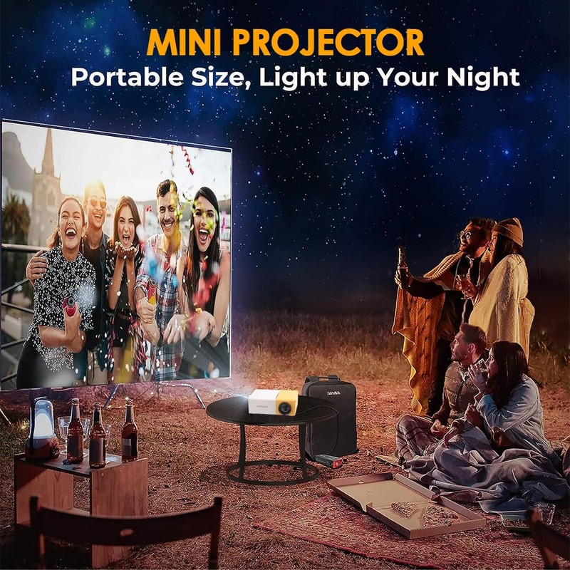 Smart Projector, Portable 6000 Lumens LED Mini Projector, 1080P Home Theater Video Projector Suitable for Outdoor Recreation and Home Theaters