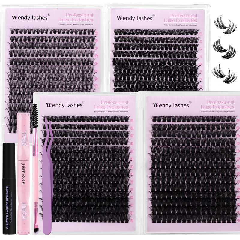 Wendy Lash Clusters Kit Packs: 1078Pcs Eyelash Clusters for DIY Lash Extensions Kit, D Curl, 10-18mm Mixed Individual Eyelashes,Cat Eye, Soft, Volume, Fluffy,Bulk Pack(40D/60D/60D/80D)