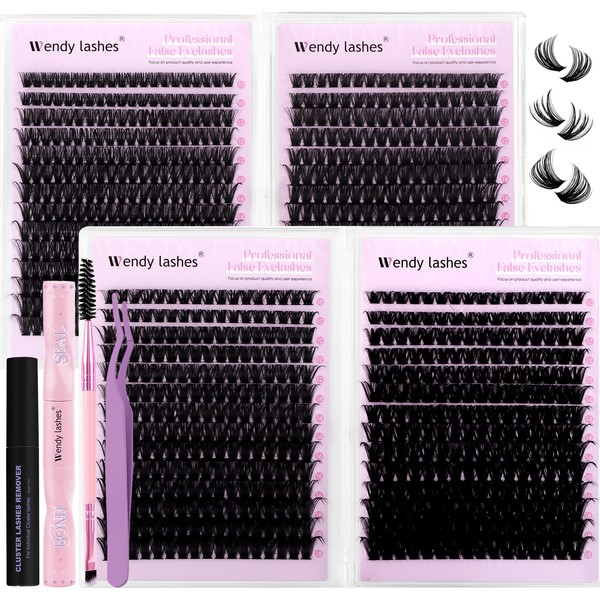 Wendy Lash Clusters Kit Packs: 980Pcs Eyelash Clusters for DIY Lash Extensions Kit, D Curl, 10-18mm Mixed Individual Eyelashes,Cat Eye, Soft, Volume, Fluffy,Bulk Pack(60D/80D/80D/100D)