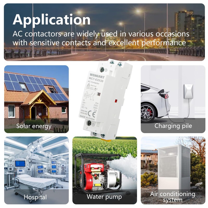 Wengart Household DC Contactor WCT-E25, DC24V 25A 2 Normally Open Efficient and Energy Saving, Achieving Precise Control of Electrical Devices