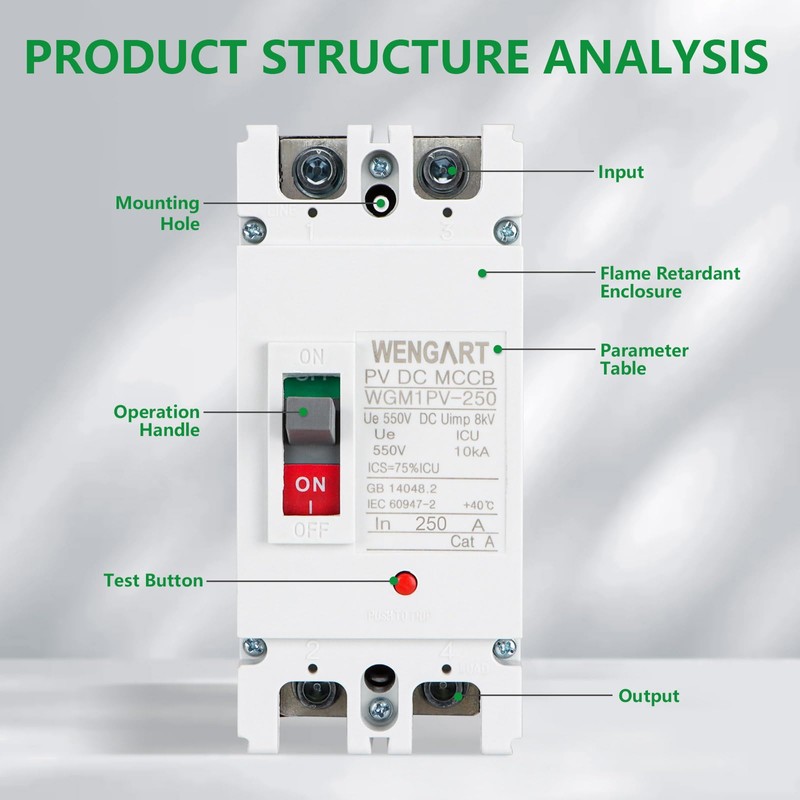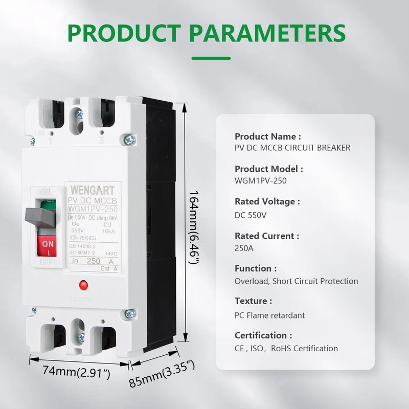 Wengart MCCB Circuit Breaker WGM1PV-250,DC500V 250Amp Solar DC Circuit Breaker,2P DC Circuit Breaker for Solar Systems and Other DC Applications