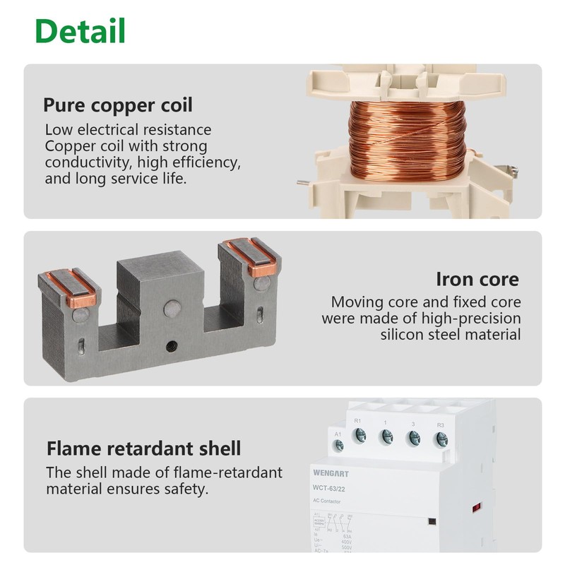 Wengart Modular Contactor WCT-63, 2NO2NC, AC230V, 63A, White, Save Installation Space, Energy Saving and Environmental Protection