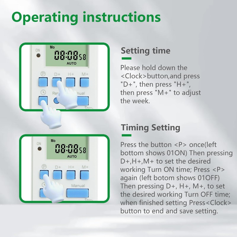 - This digital timer can simplify daily tasks. For tasks that need to be performed regularly, such as Watering plants, feeding pets at regular intervals, etc., the timer can be run automatically, reducing your daily burden.