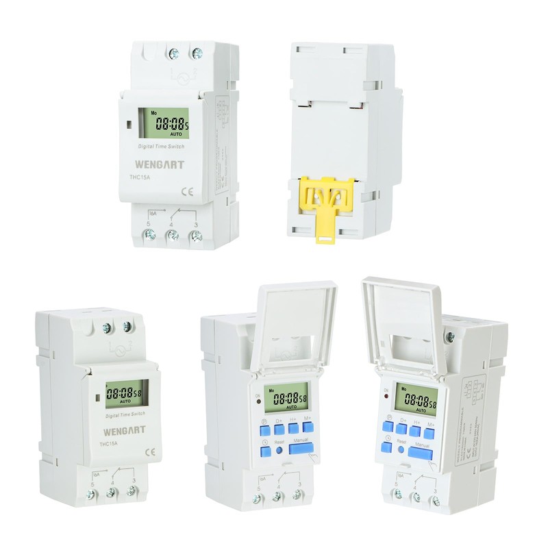 Wengart THC15A Digital Timer Switch, AC230V Weekly Programmable, Up to 28 Groups On and Off, Rail Mounting, Potential-Free Switching Output, Simplifies Daily Tasks