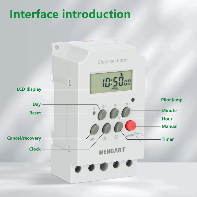 Wengart Timer KG316, AC230V 25A Weekly Programmable Timer, Automatic Turning Off of Unnecessary Devices According to the Time You Set to Reduce Energy Waste