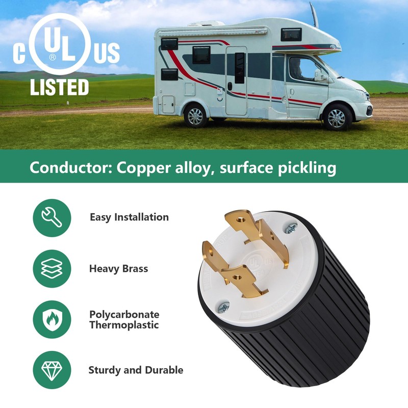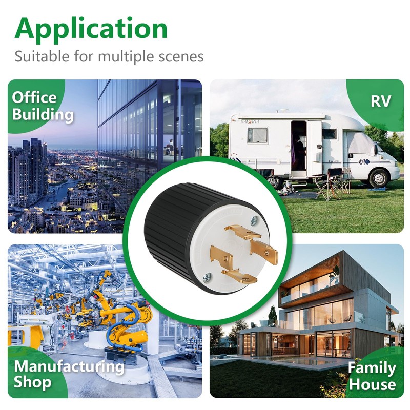 - Widely compatible with generators, RVs, and power tools: This NEMA L14-30P plug is suitable for generators, transfer switches, RVs, power tools, welding equipment, etc. It meets the needs of home backup power, camping, and industrial power, and is durable and reliable