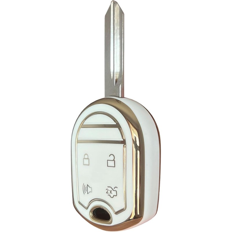 WENHENI Keyless Entry Systems Key for Ford Key Fob Cover Shell with Keychain Fit for Ford F-150 F-250 F-350 F-450 Flex Explorer Escape Ranger Fusion Econoline Mercury (4A-Button Gold-White)