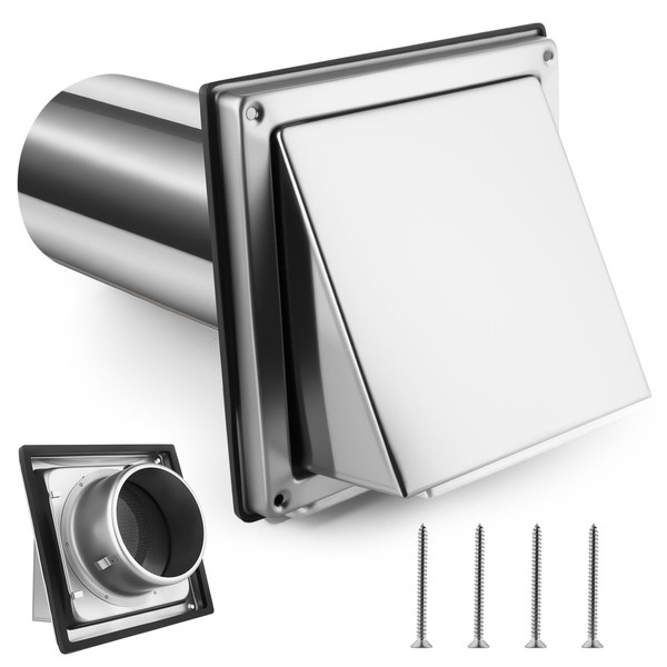 - Complete Package With Accessories: Comes with a 4-inch stainless steel dryer vent cover, a detachable extension pipe, and mounting screws. The removable pipe offers flexible installation options while ensuring everything you need is included in one package