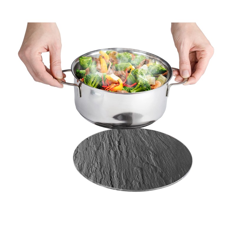WENKO 53981100 Slate, Round Trivet for pots, Pans, Tempered Glass, Black