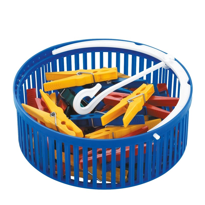WENKO Basket Set-with 30 pegs, Polypropylene, Blue, 19 x 19 x 9 cm