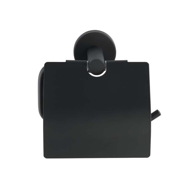 WENKO Toilet Roll Holder Stainless Steel Bosio Black Matt with Lid - Toilet Roll Holder with Lid - Rustproof Stainless Steel 15 x 13.5 x 7 cm Matt