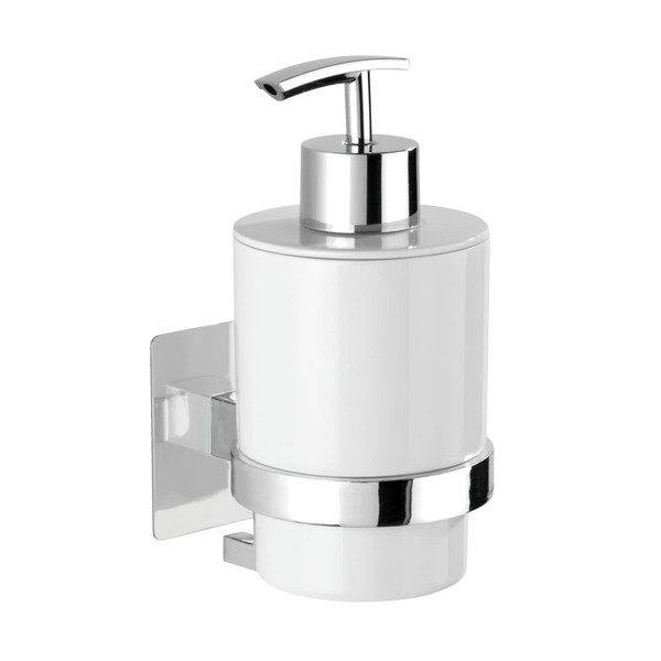 WENKO Turbo-Loc® Quadro Soap Dispenser, No Drilling Required, Liquid Soap Dispenser Capacity: 0.25 L, Plastic (ABS), 7 x 15 x 9.5 cm, Chrome