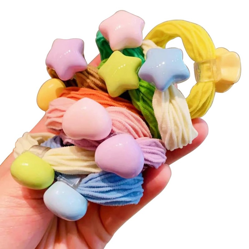 Wenlly 20 Stück Bonbonfarbene Haargummis, Haargummis, Herz und Stern, elastische Pferdeschwanz-Halter, Haar-Accessoires