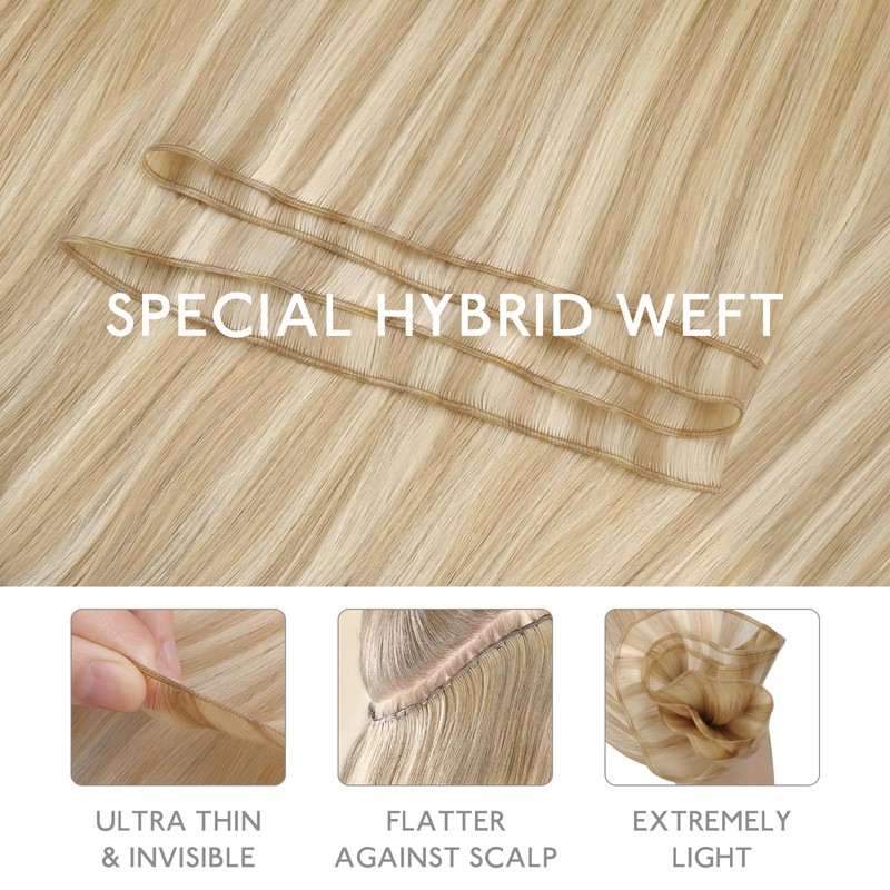 WENNALIFE Genius New Weft Hair Extensions Real Human Hair, 16" 50g Dirty Blonde Highlighted Bleach Blonde Sew in Hair Extensions Natural Luxury Remy Human Hair for Women Straight Invisible