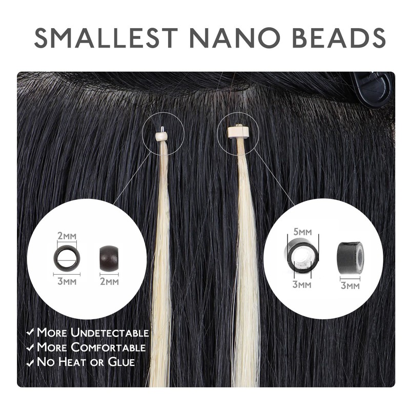 - 【Nano Bead Hair Extensions Human Hair】 WENNALIFE nano ring extensions use advanced nano ring technology, offering a discreet and undetectable way to add hair. 90% smaller than traditional micro rings, ensuring a seamless blend with your natural hair