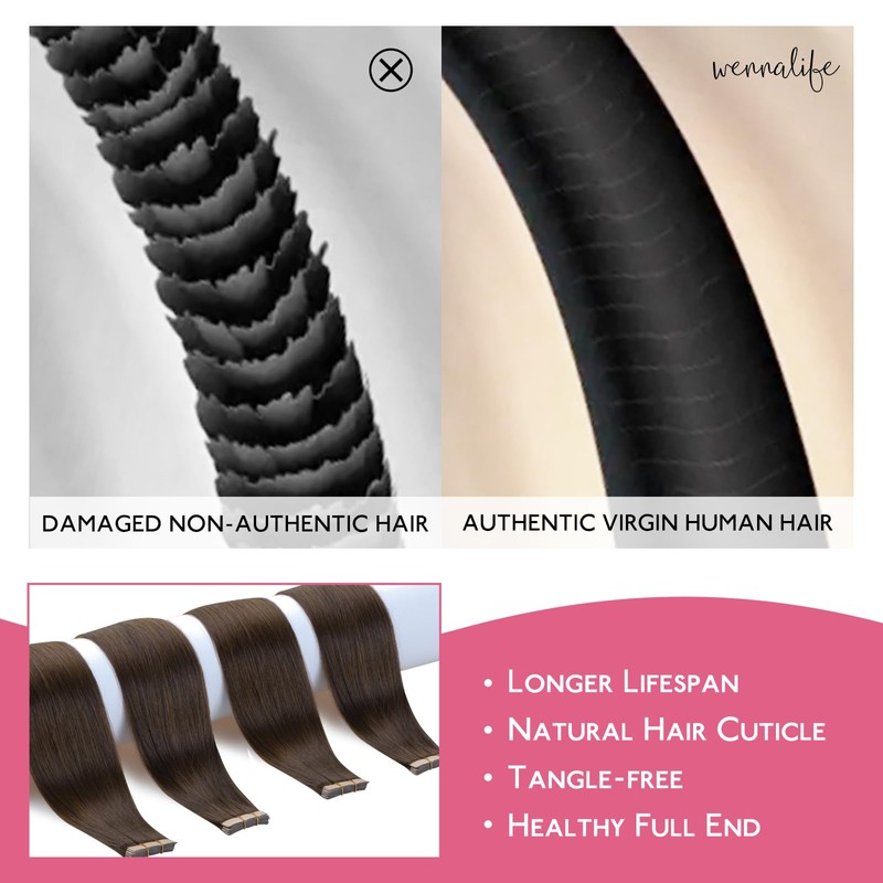 - 【Versatile Tape In Extensions】Explore WENNALIFE 1.5-inch wide, 10-pcs tape ins, sizes from 10" to 26", grams from 20g to 30g. With our human hair tape in extensions, 1 pack is enough for highlights, for full head highlights we recommend 2-3 packs. To add volume to the full head, we recommend ordering our 50g tape ins 2-3 packs. These can also be a refill pack for 50g. Please kindly keep in mind that less washing can help keep the color vibrant.