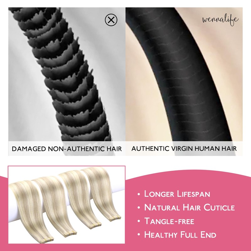 Wennalife WENNALIFE Tape in Hair Extensions Human Hair Tape in Extensions, 10pcs 25g 16 inch Remy Invisible Tape Ins